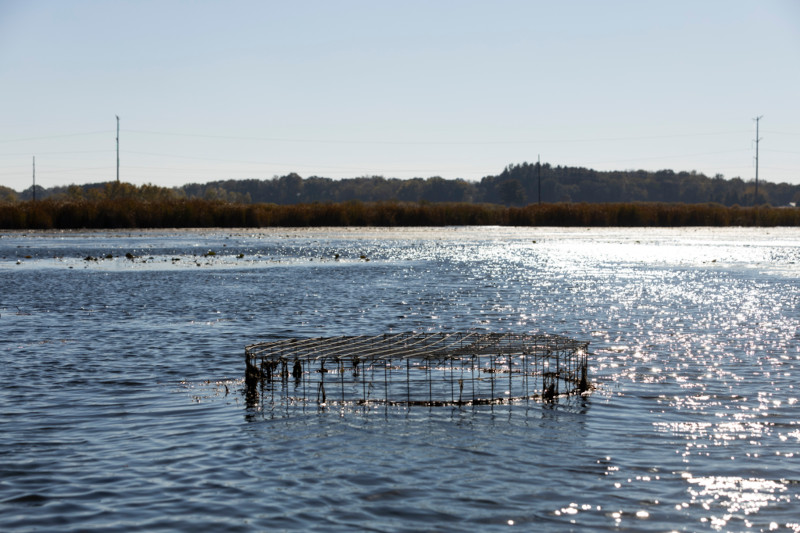 Backed-up water enlarged the surrounding marsh and pond, where sandhill cranes, geese and ducks meander through a boggy stew of algae, lily pads and submerged logs.
