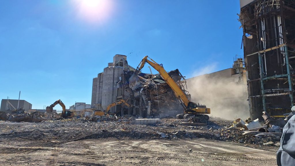 For just over a year, drivers on Highway 34 have been able to catch a glimpse of the demolition from the overpass. While much of the property isn’t visible from the road,  you can hear the sounds of demolition —  especially when MRD Group is bringing down the stacks. Owner Gerald Blomberg said once they were awarded the project in September 2024, they have worked steadily to finish ahead of schedule.