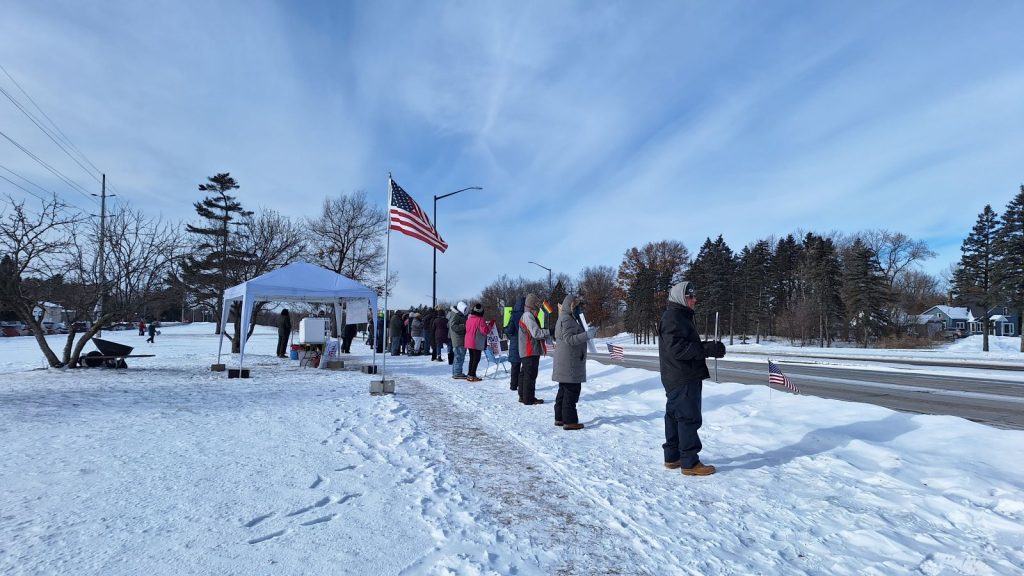Protesters bundled up for the Free America Walkout in Wisconsin Rapids